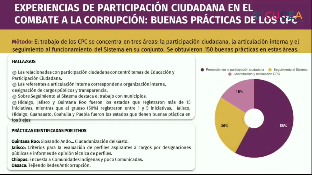 En otro dato, que desde mi visión me parece fascinante, se sistematizaron 150 buenas prácticas de los Comités de Participación Ciudadana: